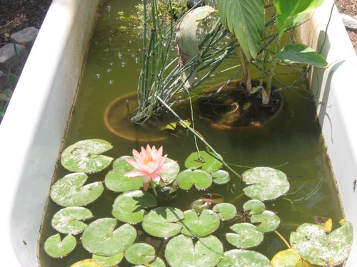 We’ve enjoyed the water lilly growing in our bathtub pond. The tub is home to three goldfish named Fred. Bacon named them. Cherry and Coco remind him daily, “It’s time to feed the Freds.”
