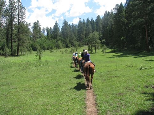 We’d climbed into a kiva at the ancient Indian ruins, fed the trout at the fish hatchery, and examined the silver jewelry for sale in front of the Palace of the Governors. We were running out of things to keep three very active little girls occupied. A horseback ride sounded like an excellent idea. I was relieved he had come up with a plan. “Great!”