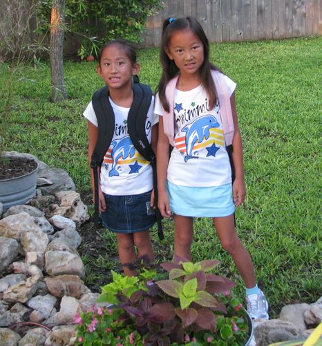 I’m working on the book everyday, so I’m behind on the blog. Here’s a picture of Coco and Cherry on the first day of school. More later . . .