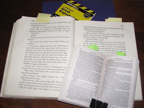 I just finished reading Great Expectations. (Before, I’d read an abridged version from my ninth grade literature book.) At first, I bought the Cliffs’ Notes and the paperback, but I couldn’t get past page fifty. Then I discovered the large print edition from the public library. It’s a lot easier to read seven hundred and twenty-four pages of 16 pt. print vs. 8 pt.