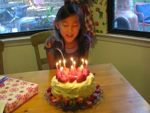 Birthday girls (and boys) get to special-request homemade cake, and Cherry loves pink. I’ve made this one before, but the fresh fruit and better-than-shoe-shopping frosting pushed it over the top. Cowgirl gave me the recipe, handwritten on an index card, over thirty years ago. Still works!