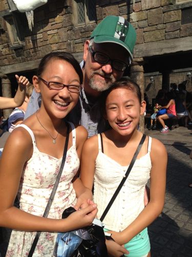 At Universal Studio’s Islands of Adventure, better known as The Wizarding World of Harry Potter, we gawked at a snow-covered Hogsmead, glowing in the 90° Florida sun. The replication of the movie set was nothing short of amazing. Well, except for Ollivander’s Wand Shop. Every Potterphile knows Ollivander’s is in London’s Diagon Alley. A cast member informed us that Ollivander had a branch store in the Hogwarts outpost. You know. In case a student lost a wand or needed to repair a unicorn hair core. The girls nodded politely. Cherry, a walking Wikipedia of Potter-lore, bit her tongue and got in the queue. We weren’t sure what we were in line for, but after two days at Disney World, we’d learned not to evaluate. It’s better to charge ahead than to spend all day debating the ride.
