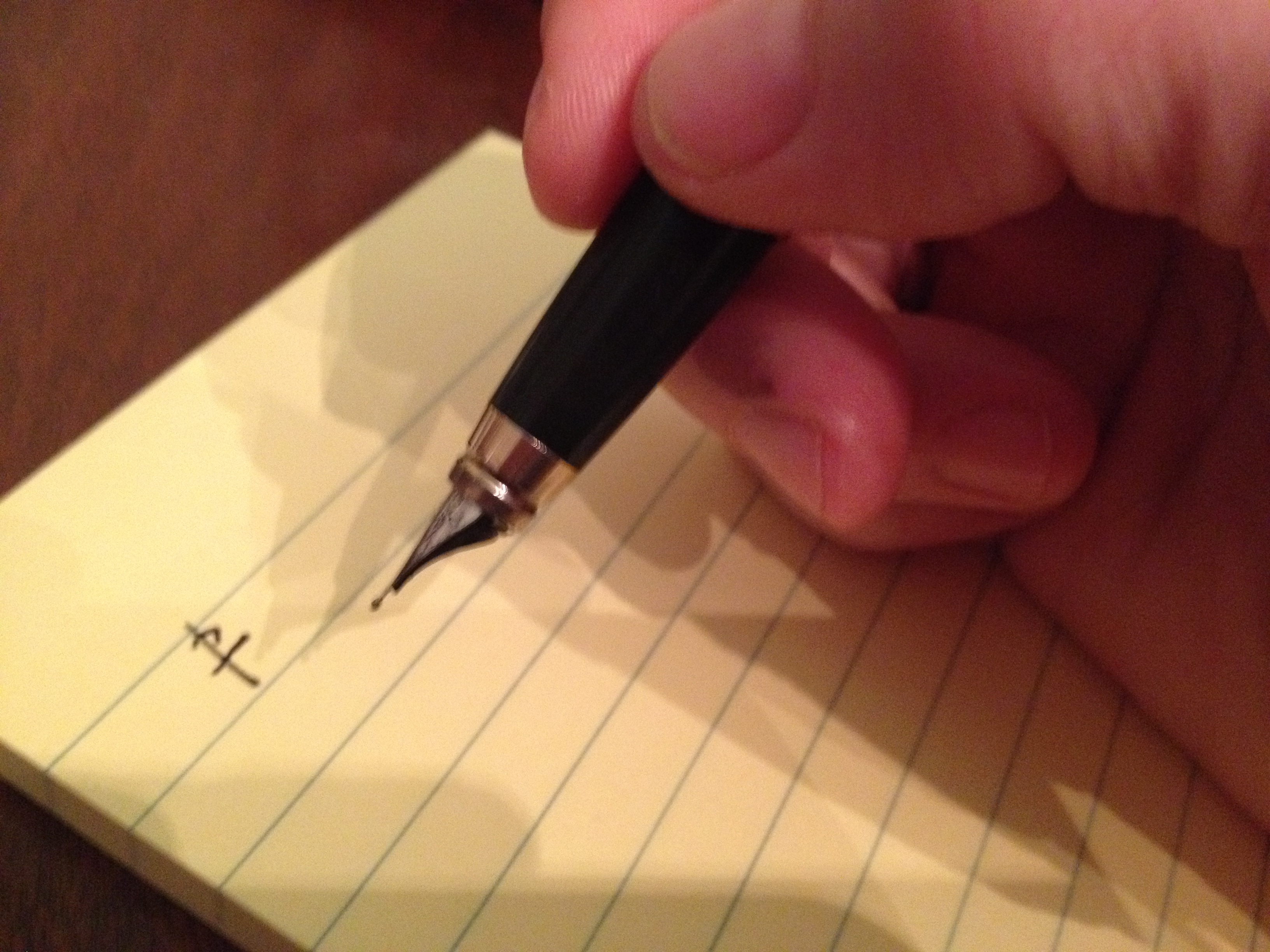 writelikeamanI have ink on my middle finger. My fountain pen has a refillable cartridge. It’s the kind you dip into a well and pull up the plunger to suck black blood into the instrument. I haven’t filled it much lately, so maybe it’s lack of practice that leaves the stain on my writer’s bump. Or maybe it’s intentional, a subconscious dribble on the f*ck-you digit that screams Look at me. I’m a real writer.