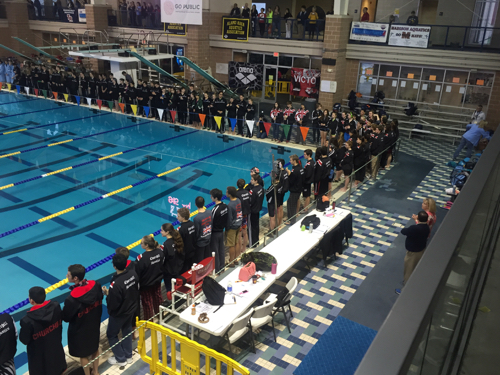The Parade of Athletes from the District Swim and Dive Meet. Cherry is in there, somewhere.